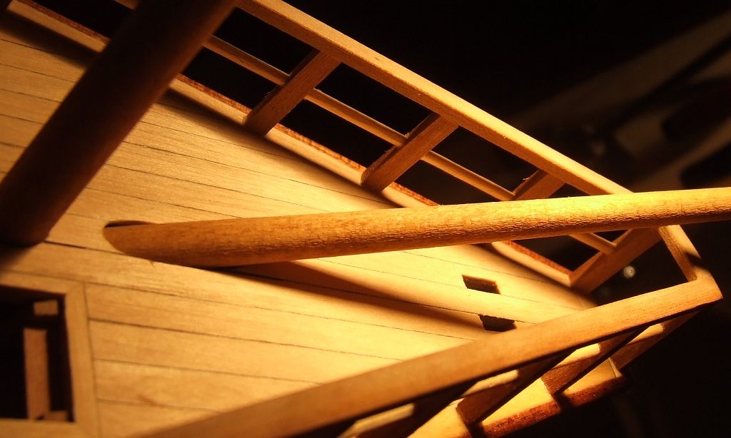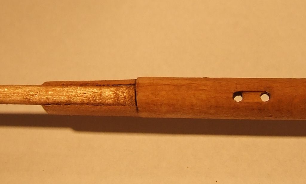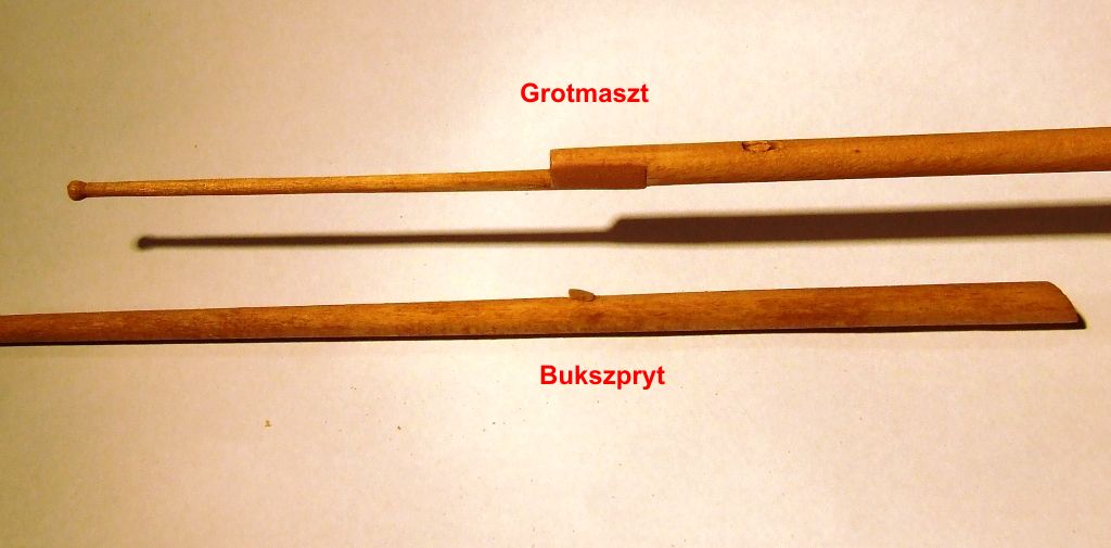 Wkleiłem też fokmaszt i wyciąłem otwory na dziobie