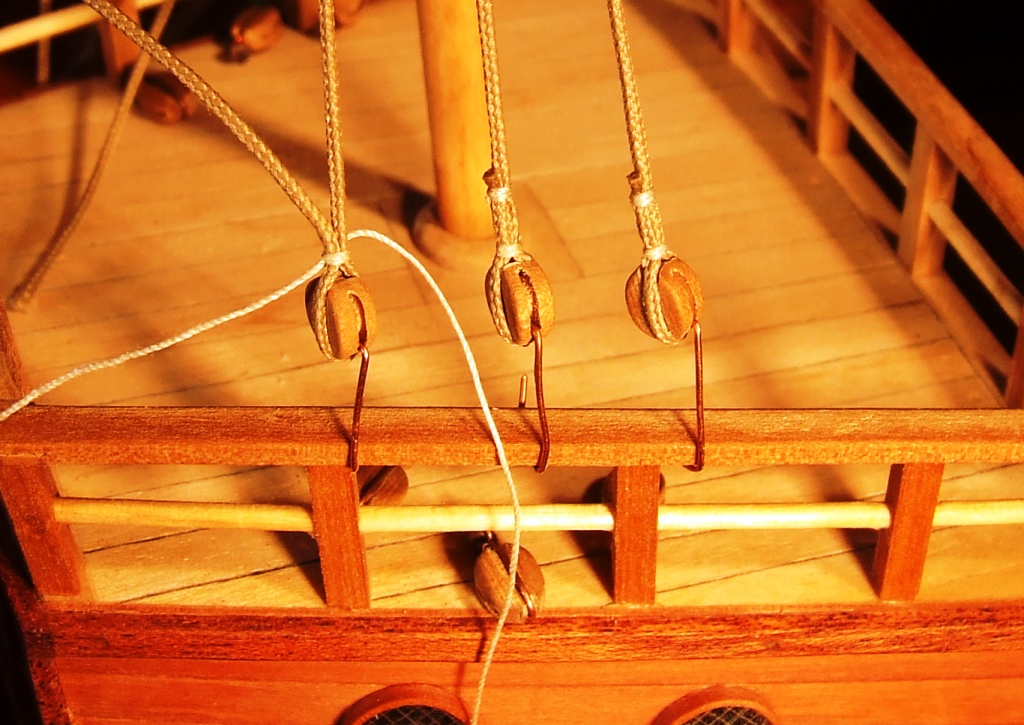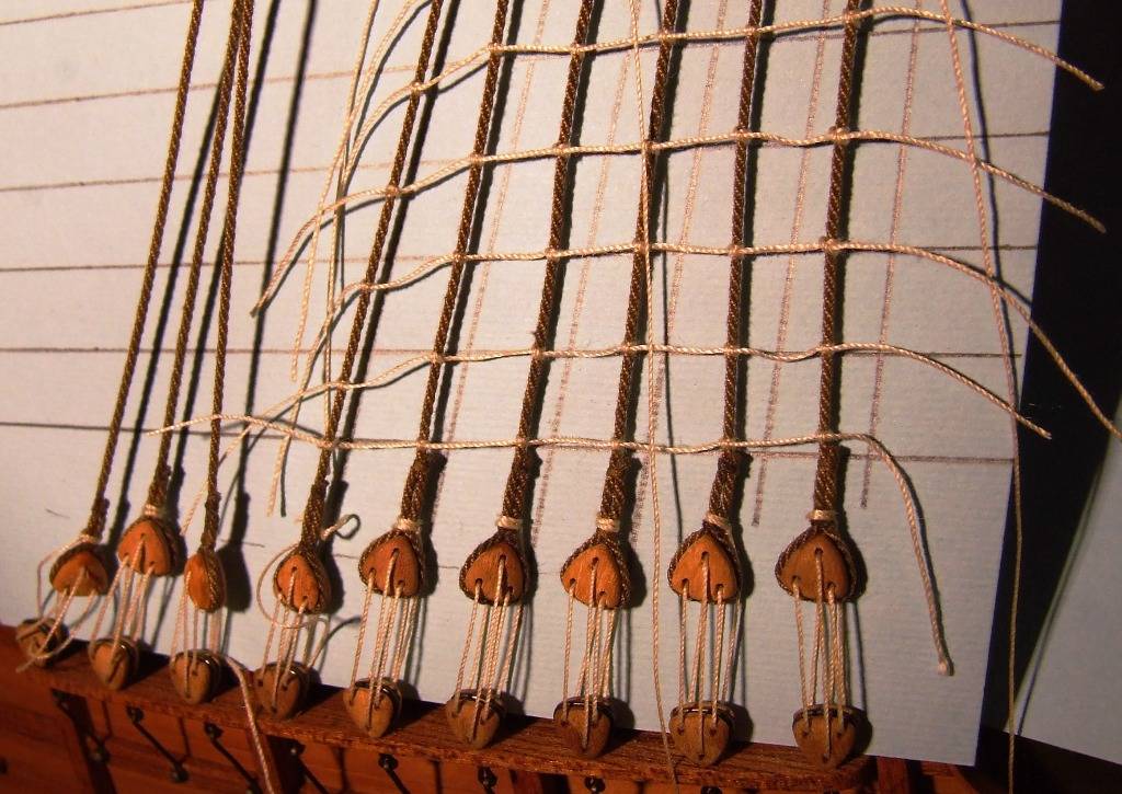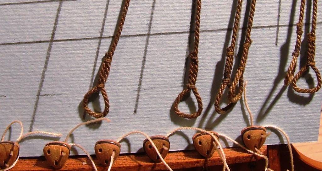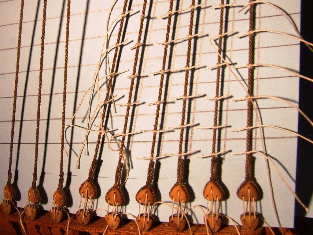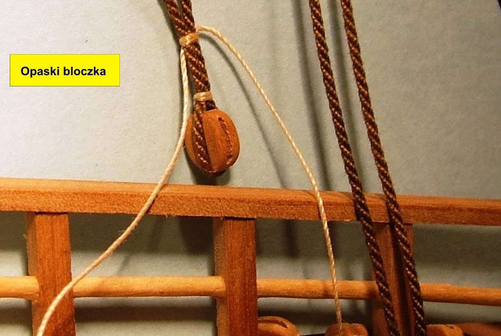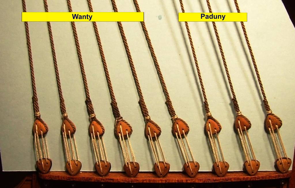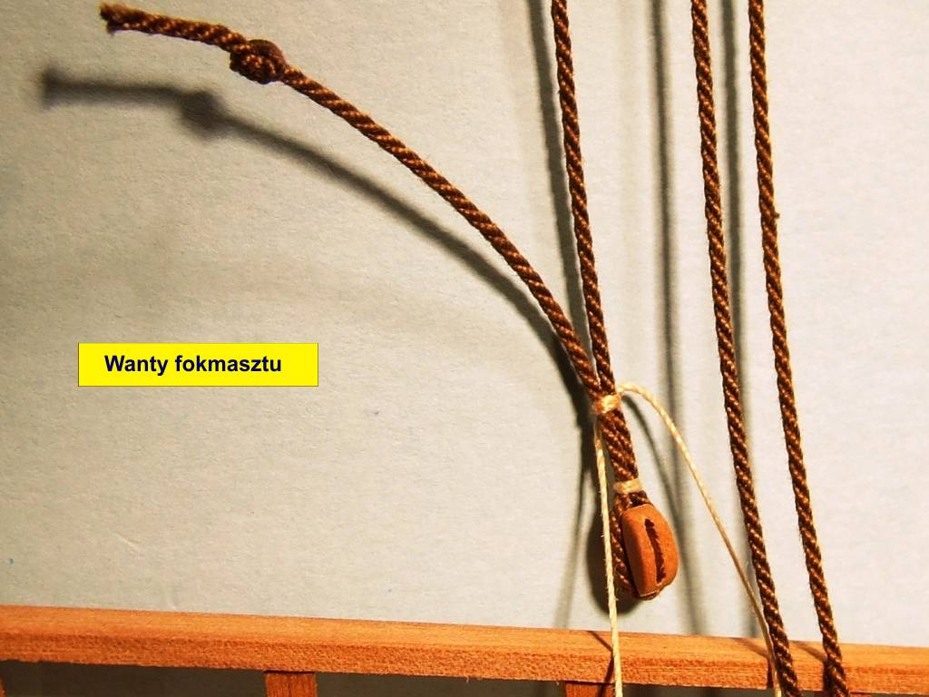 Wiązania want grotmasztu oraz bezana drugiej burty.