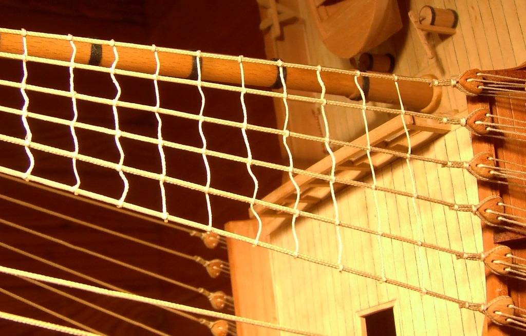 Ja stosuję prawidłowy sposób wiązania,chociaż sprawia mi to sporo problemów np. przy 12 wantach.Wanty są różnej grubości czasami niewiele grubsze od wyblinki do tego "smołowane"a więc trochę sztywne i przebijanie igłą sprawiało by jeszcze większy problem.Idziesz trochę na skróty.Wykonałeś wanty z jakiejś plecionki i nie czernione.Model wykonany bardzo dobrze i niepotrzebnie tak upraszczasz.Tam gdzie można stosuj techniki zastępcze ale olinowanie musi być prawidłowe bo to wizytówka modelu.R