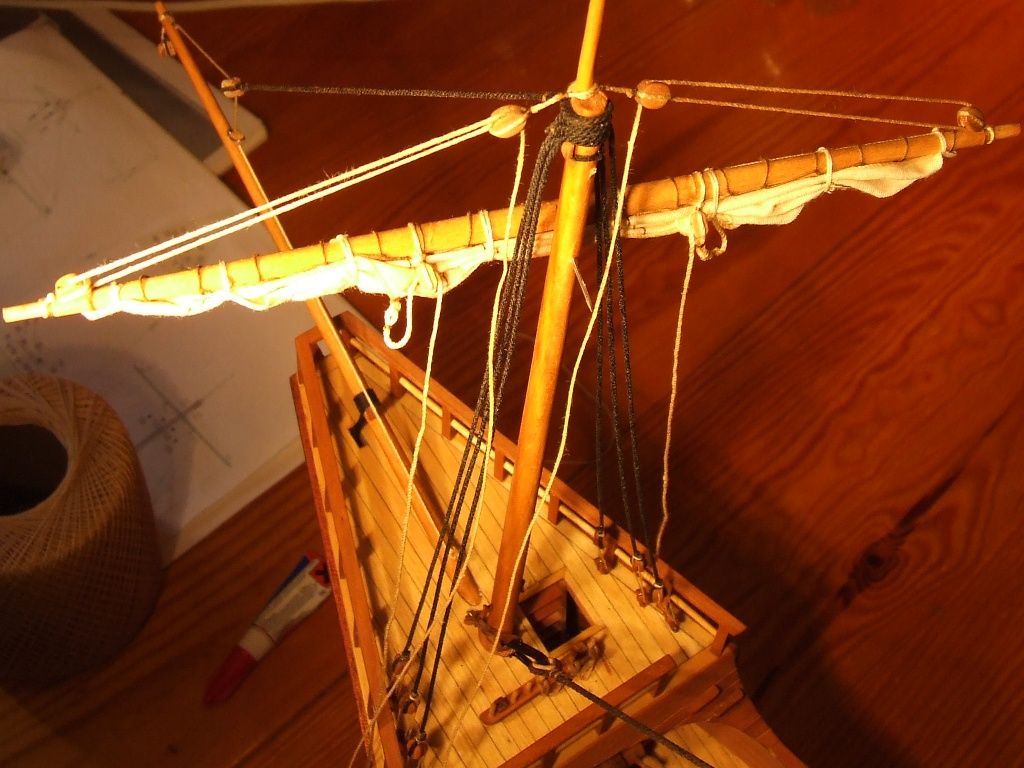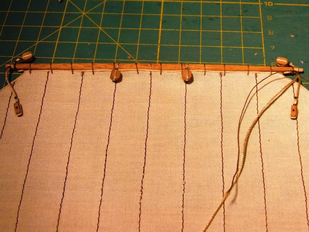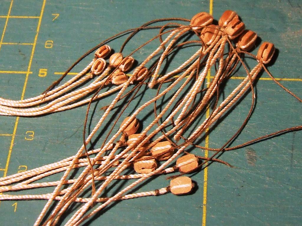 Przywiązałem 16 bloczków do żagli grota.