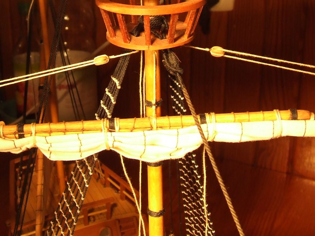 przed powieszeniem rei na maszcie. Po powieszeniu prace są utrudnione.