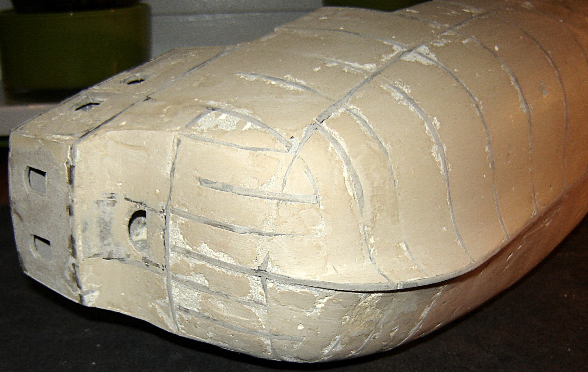 Poszycie jednej strony skończone, jeszcze nie oszlifowane:
