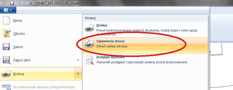 W Paincie w menu głównym zmieniamy ustawienia wydruku.