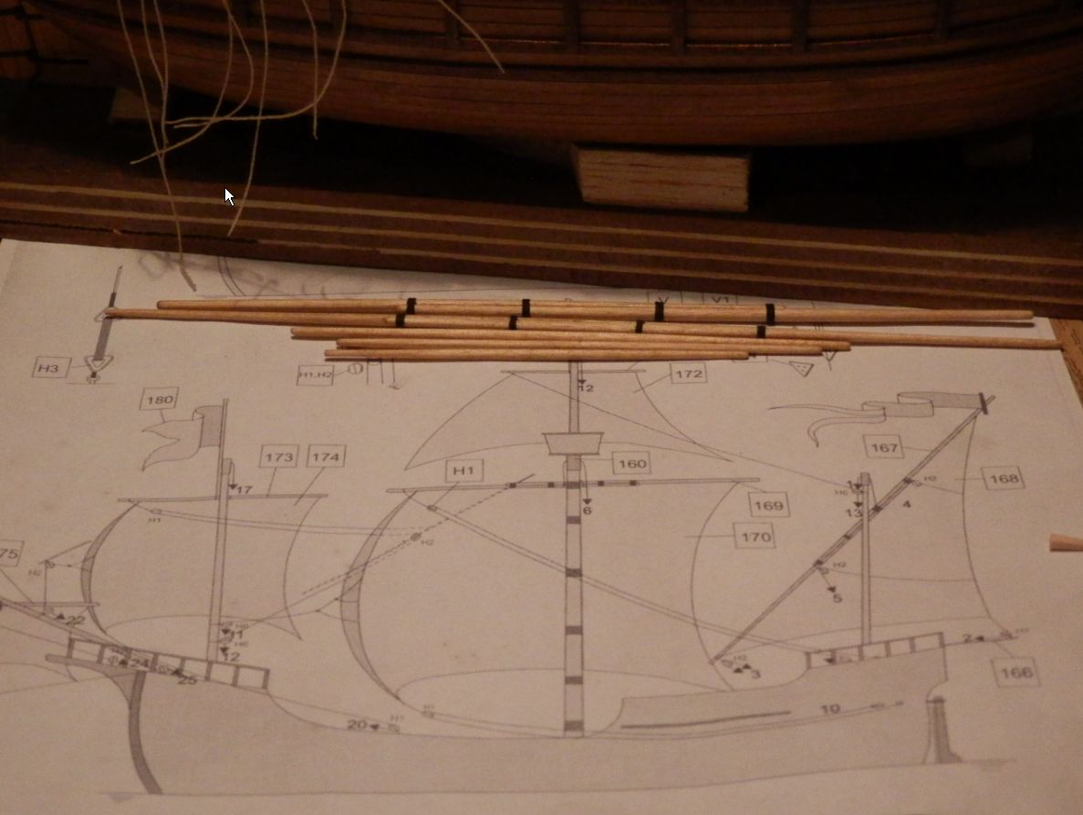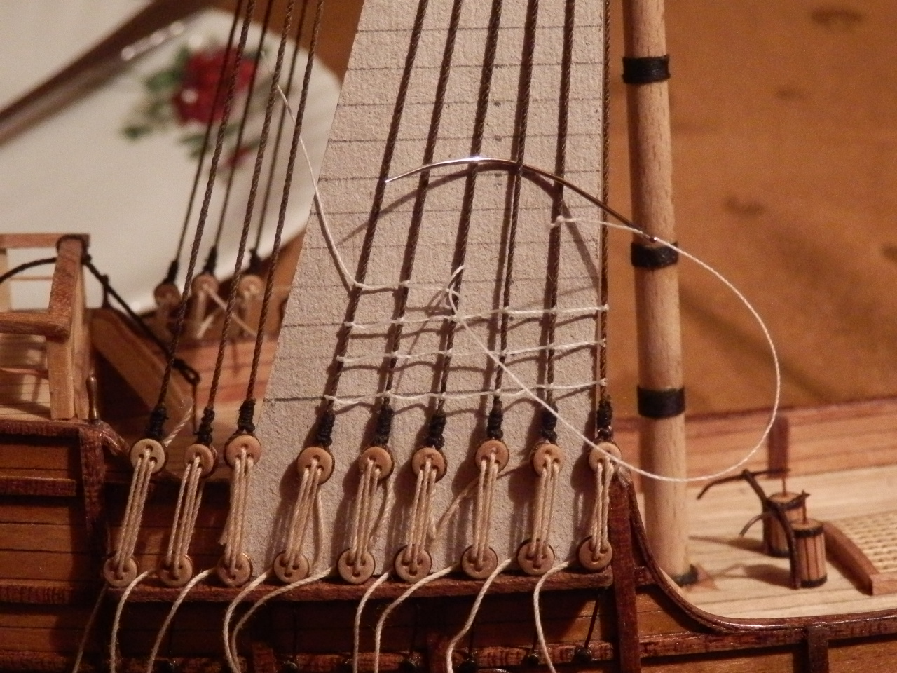 Wracając do budowy to na modelu nieśmiało pojawiają się pierwsze elementy olinowania stałego ,,,