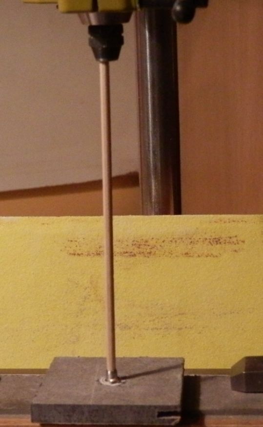 Wiertarko frezarka zamontowana w stojaku a na dole mini łożysko z wirnika zabawkowego helikopterka, w to patyczek do ręki papier ścierny i szlifowanie. Niby nic ale na reje wystarczyło