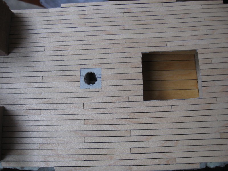 Nie był jeszcze przeszlifowany, a przemaluje go pokostem albo olejem 3v3 do parkietu po deskowaniu pokładu rufowego i dziobowego.