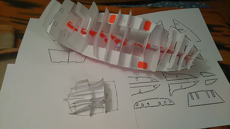 Tak oto zaczynam wycinać szkielet z tektury. Oraz pasowanie wszystkiego w całość.