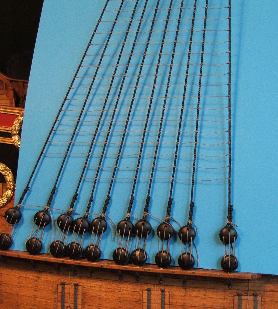 Odległość między talrepami nie regulują żadne normy.Wahała się między~2D do5D.Poza tym o odległości decydowały względy konstrukcyjne.Żeby np.nie zasłaniały otworów armatnich.Co do średnic talrepów pod paduny jest rzeczywiście taka sama jak pozostałe (dla grotstengi )tak jest i w RW.Dla bramstengi są już mniejsze.Rury odprowadzające wodę z pokładów robiono z ołowiu a ujście było osadzone w okrągłym lub prostokątnym kołnierzu.Umieszczano je w najniższych partiach pokładu.Na dole łuku.Ile ich było nie wiem.Ja ilość zrobiłem kierując się instynktem.Gdybym model wykonywał co np.2 lata to pamiętałbym o luzach itd.A jak robię co 6 lat lub dłuzej to wiele rzeczy zapominam.Z resztą w pewnym wieku człowiek każdego dnia dowiaduje się coś nowego.I przez to życie robi się ciekawsze.Pozdr.R