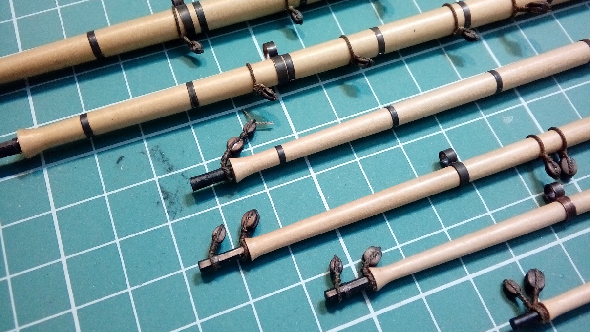 Witam, trochę to trwało ale wykonałem wszystkie reje do mojej Leokadii. Posłużyłem się w tym celu tokarką Proxxona 250. Największa reja ma długość 40cm. co znacznie przekracza możliwości tej tokarki