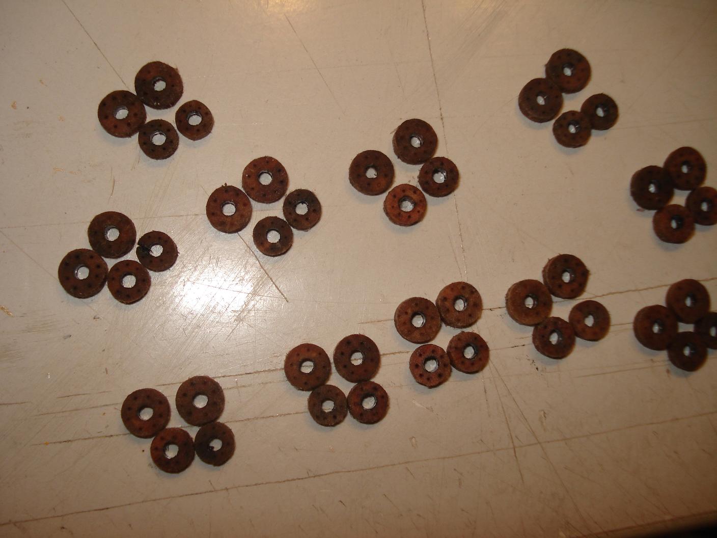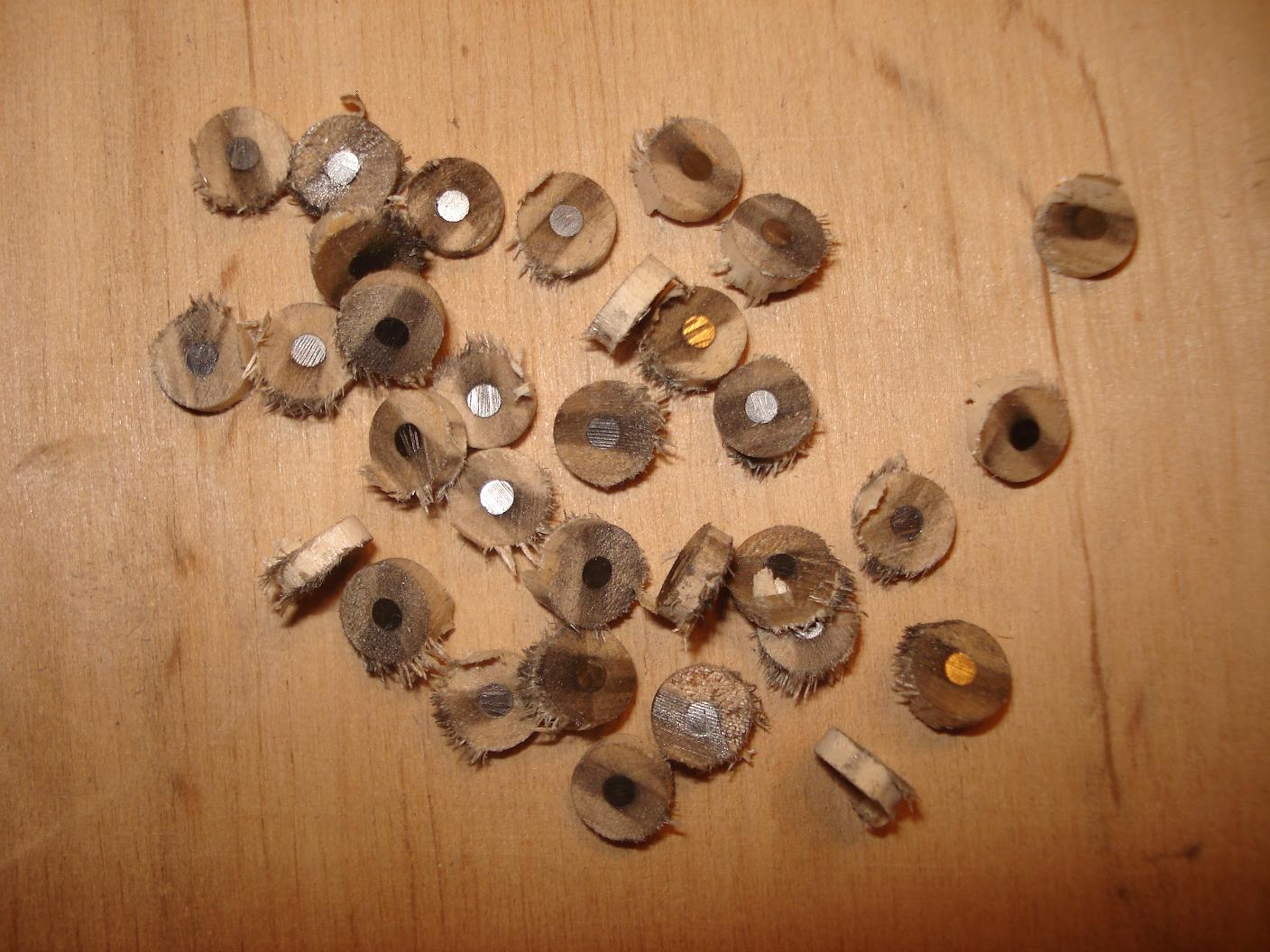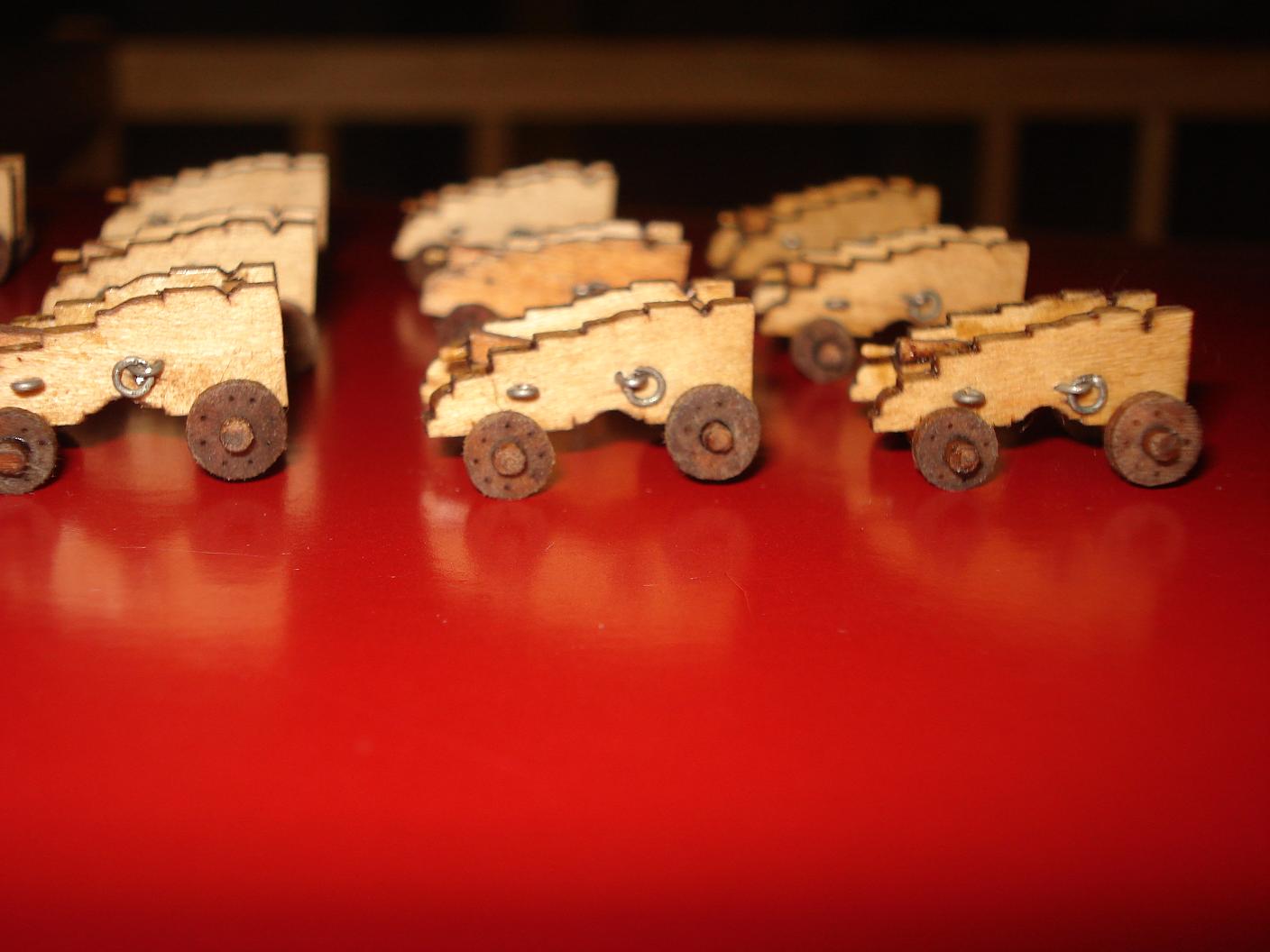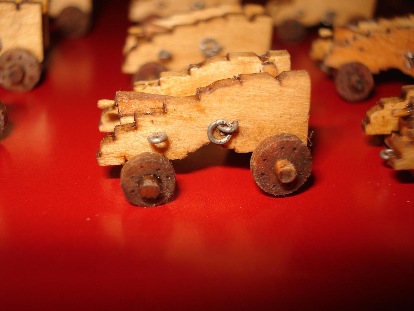 Witam wszystkich po bardzo długiej przerwie, w tym czasie niestety nie wiele mogłem poświęcić czasu na budowę modelu. Podczas mojej nieobecności zaszło bardzo dużo zmian, wiele modeli zostało ukończonych, powstało wiele nowych relacji. Odlewanie armat z ołowiu stanęło i to chyba na dobre. Mam mały kłopot ze zdobyciem gotowej armaty jako kopyto o długości 35mm. W tym czasie udało mi się wykonać lawety pod armaty te które będą widoczne. Podczas kilku nieudanych prób wykonania kółek pod lawety, a raczej nieudanych próbach wiercenia na oś, postanowiłem pójść troszkę na łatwiznę. Ołówek o przekroju rysika 2mm (tyle ile ma oś lawety) ścieniłem do żądanego obwody koła następnie pociąłem na 2mm szerokości kółka, rysik ze środka wycisnąłem i tak powstał otwór pod oś.