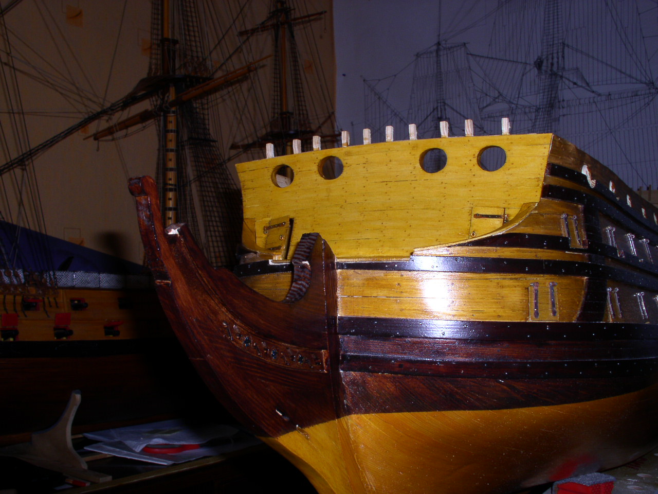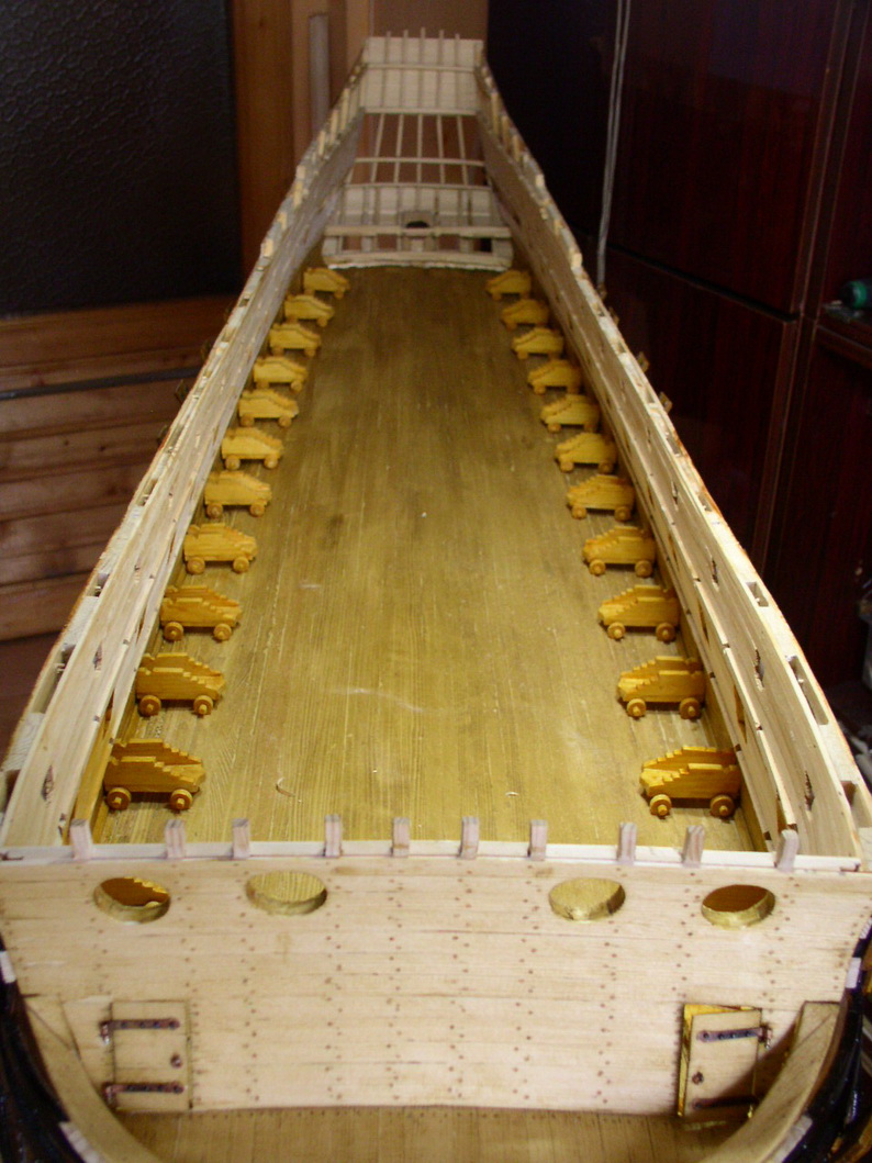 Ciąg dalszy prac przy modeliku. Jak na razie zrobiłem lawety i powoli zbliżam się do zamknięcia pierwszego pokładu. Pozostało mi wytoczyć 28 armat i wszystko poukładać.