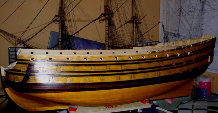 Ciąg dalszy prac. Jak na razie zrobiłem furty działowe. Teraz muszę wykończyć burty do samego końca