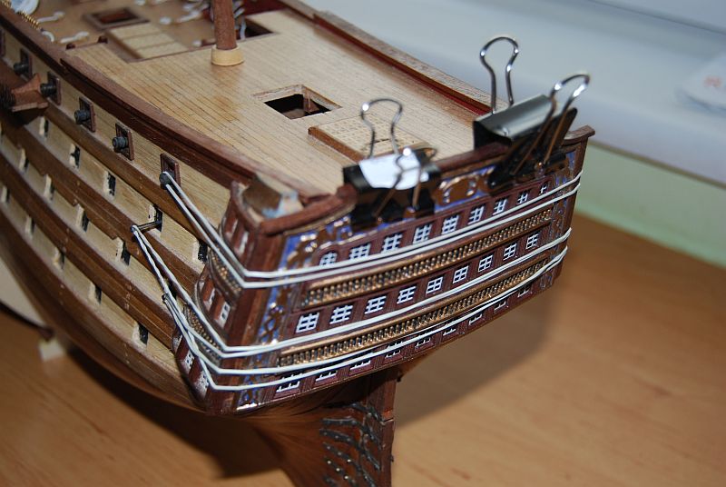 Odnośnie żagli to zdaje się że powinny tworzyć coś w rodzaju piramidy. Jednak wychodzi że są braki. Na szczęście udało się na mokro trochę płótno naciągnąć . Resztę braku ukryje się mam nadzieje profilacją żagla.