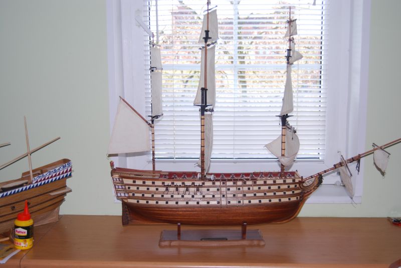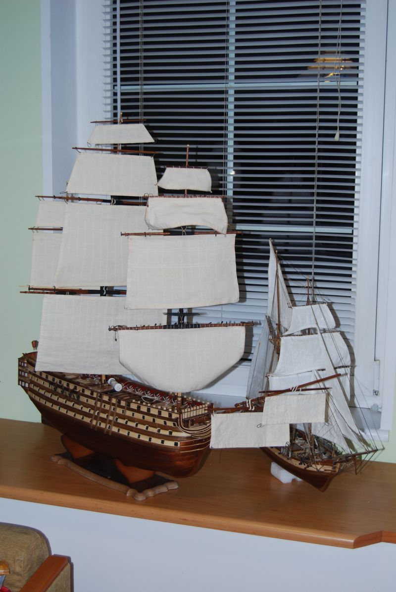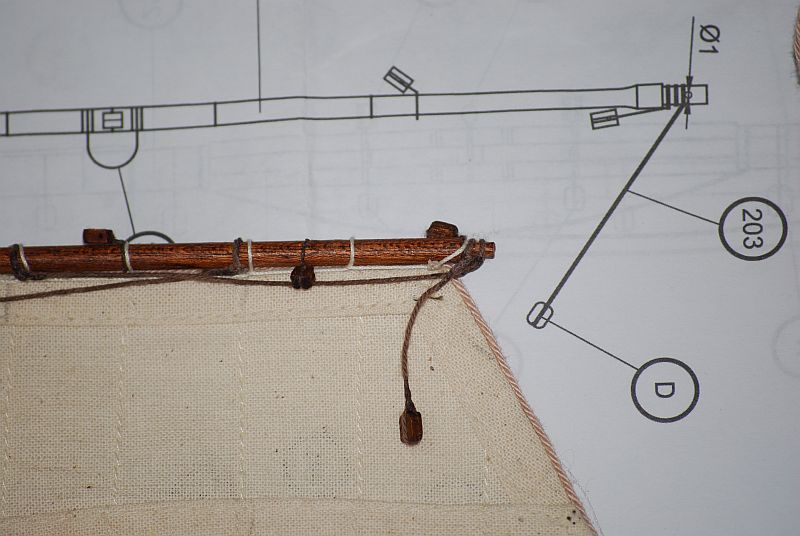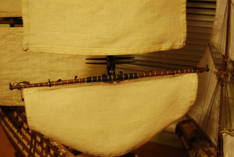 Wymęczyłem wszystkie reje . Żagle wstępnie powieszone prezentują się jak ma zdjęciach.