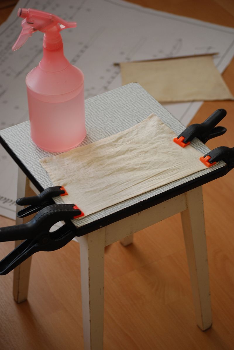 No i zapomniałem że muszę naciągnąć ten oblikowany żagiel tak żeby możliwie pasował do żagla poniżej rozstawem. Oblikowanie na klej magic przy rozciąganiu na sucho trzymało jak dzikie. Przy zroszeniu żagla zraszczem do kwiatów klej przestał spełniać swoją funkcję. Lik oddzielił się od żagla. Kusi mnie żeby pokombinować z wodoodpornym Patexem dziś. Zobaczymy.