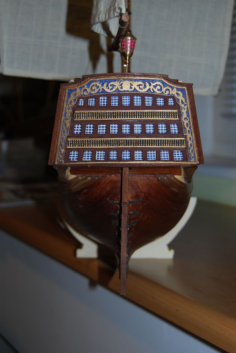 Okleiłem oryginalny ster paskami forniru. Jak miało by wyjść tak jednolicie jak wyszło ze sterem to nie wyjdzie. A tu nie widać prawie w ogóle podziału desek mimo iż układałem słoje w odwrotnym kierunku ( o ile na mahoniu się da ) Przykleiłem lustro. Okucia steru zrobiłem jak mi się wydawało za słuszne. Occre przewidziało tylko na belce pionowej zawias nienachodzący na dno. Wykorzystałem zestawowe zawiasy i stąd takie a nie inne rozmieszczenie gwoździ.