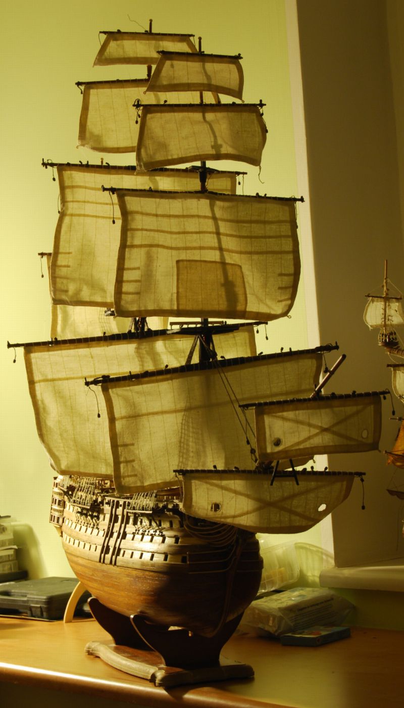 NO to poleciałeś z robotą. Żagle planujesz zostawić rozpuszczone czy też zwinięte ?? Jak byś mógł wrzucić jeszcze jakieś fotki z wyblinkami to by było super . Jak mocowałeś fok marsreje itp ?? może jakiś schemacik masz bardzo by się przydał