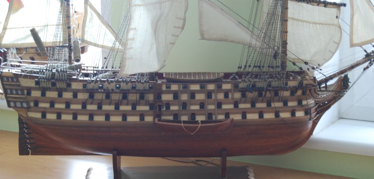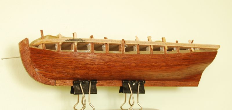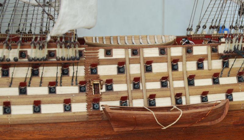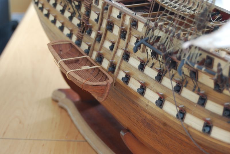 Bardzo ładna szalupa. Ja bym uzbroił w maszt, linki i dał na osobnej małej podstawce koło okretu