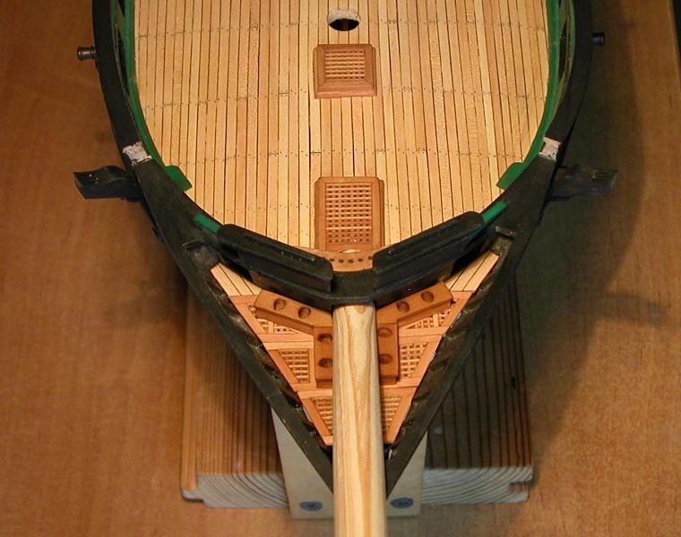 Mnie też szkoda. Chociaż podglądactwa w zasadzie nie popieram, ale może bardziej tu chodzi o "zaglądactwo". Myślę więc nad sposobem zdejmowania głównego luku, co pozwoliłoby choć troszeczkę zajrzeć go środka. Wyjmowany luk to nie problem. Kłopot polega na tym, że na owym luku zamocowane będą dwie szalupy, zatem muszę wymyślić "patent", który pozwoli na w miarę stabilne związanie luku z okrętem po umieszczeniu go na miejscu i jednocześnie łatwy demontaż.