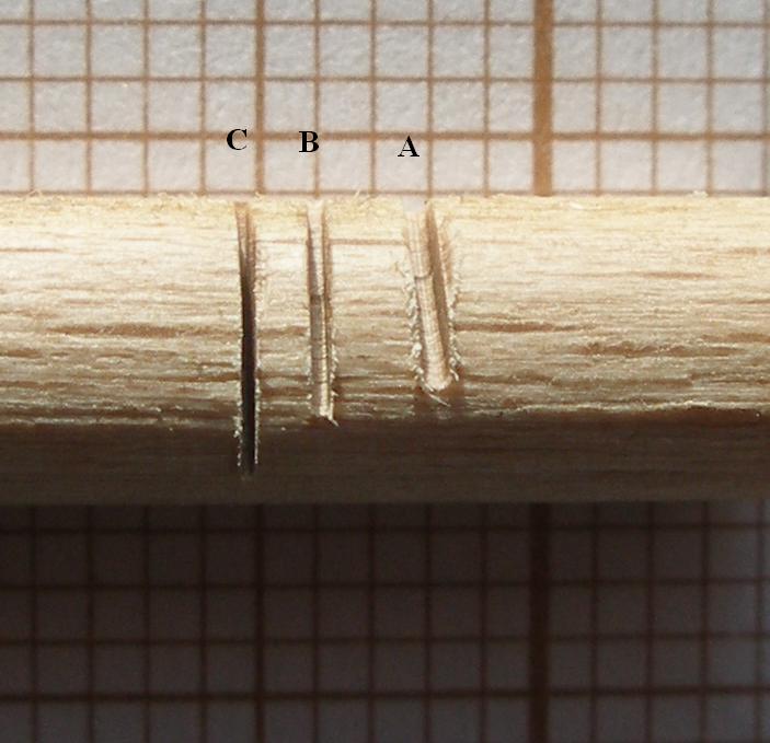 Na początek w deseczkach o grub. 2 mm taką oto metodą naciąłem poprzeczne rowki: