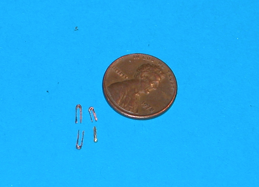 Udało mi się także zrobić ponad 200 (na foto tylko część) oczek, które posłużą jako prowadnice lin biegnących wzdłuż górnej powierzchni rei (nie wiem jak się one nazywają, a prawdopodobnie służą marynarzom do przytrzymywania się w czasie stawiania żagli). Oczka zrobione z drutu 0,3 mm, a średnica otworu 0,5-0,6 mm. Polutowane i poczernione.