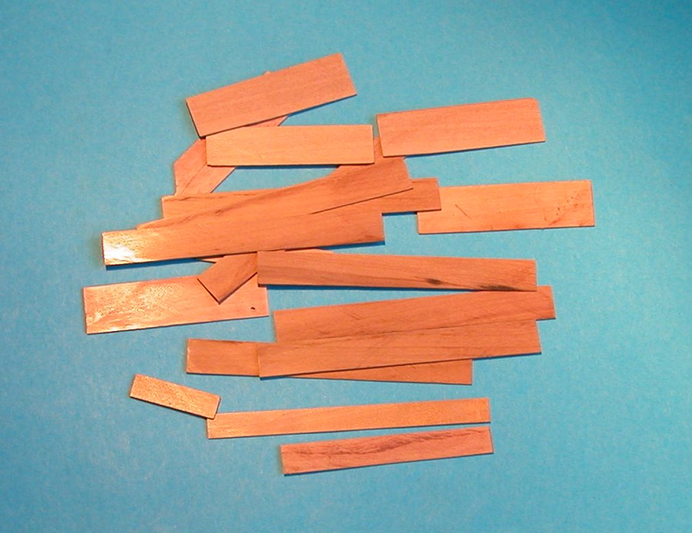 Wstępnie naciąłem sobie z gruszy listewek/deszeczek o grubości 0,4 mm: