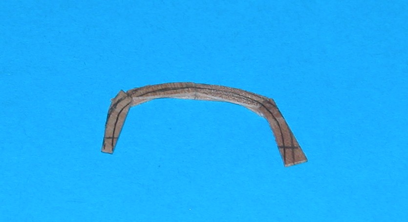 Z listewek/deseczek skleiłem „zgrubnie” wręgę – możliwe było klejenie z kawałków, na zakładkę, jak przy wykonywaniu normalnych wręg, bo w części dennej (pod podłogą) wręga ma podwójną grubość.