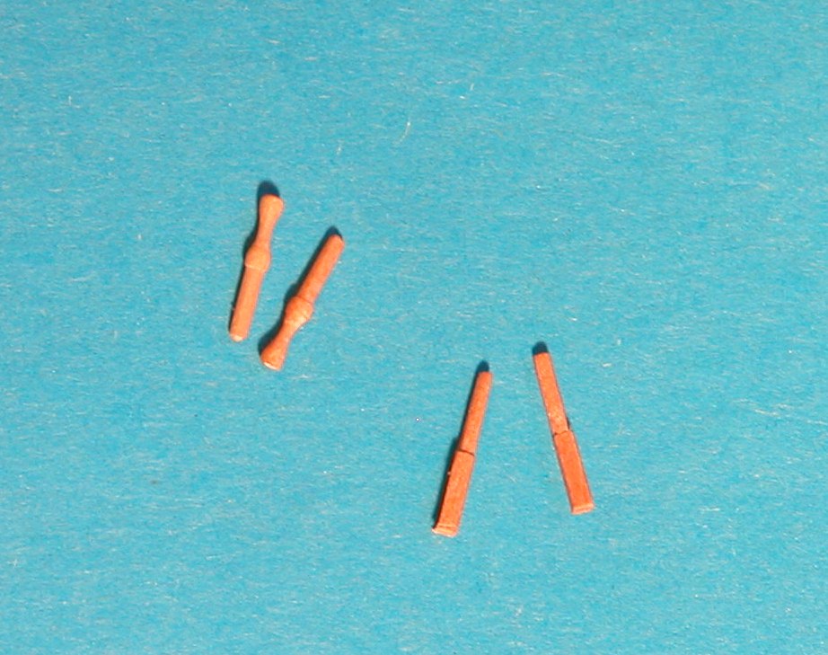 Szczęśliwie kształt i wymiary kotwic pokrywały się z dokładnością do 0,5 mm z typowym odlewem dostępnym w sklepie internetowym http://www.modelarstwoszkutnicze.com. Uniknąłem dzięki temu konieczności ich odlewania. Wystarczyło lekko dopieścić iglakami, dorobić nową drewnianą belkę i kółko.