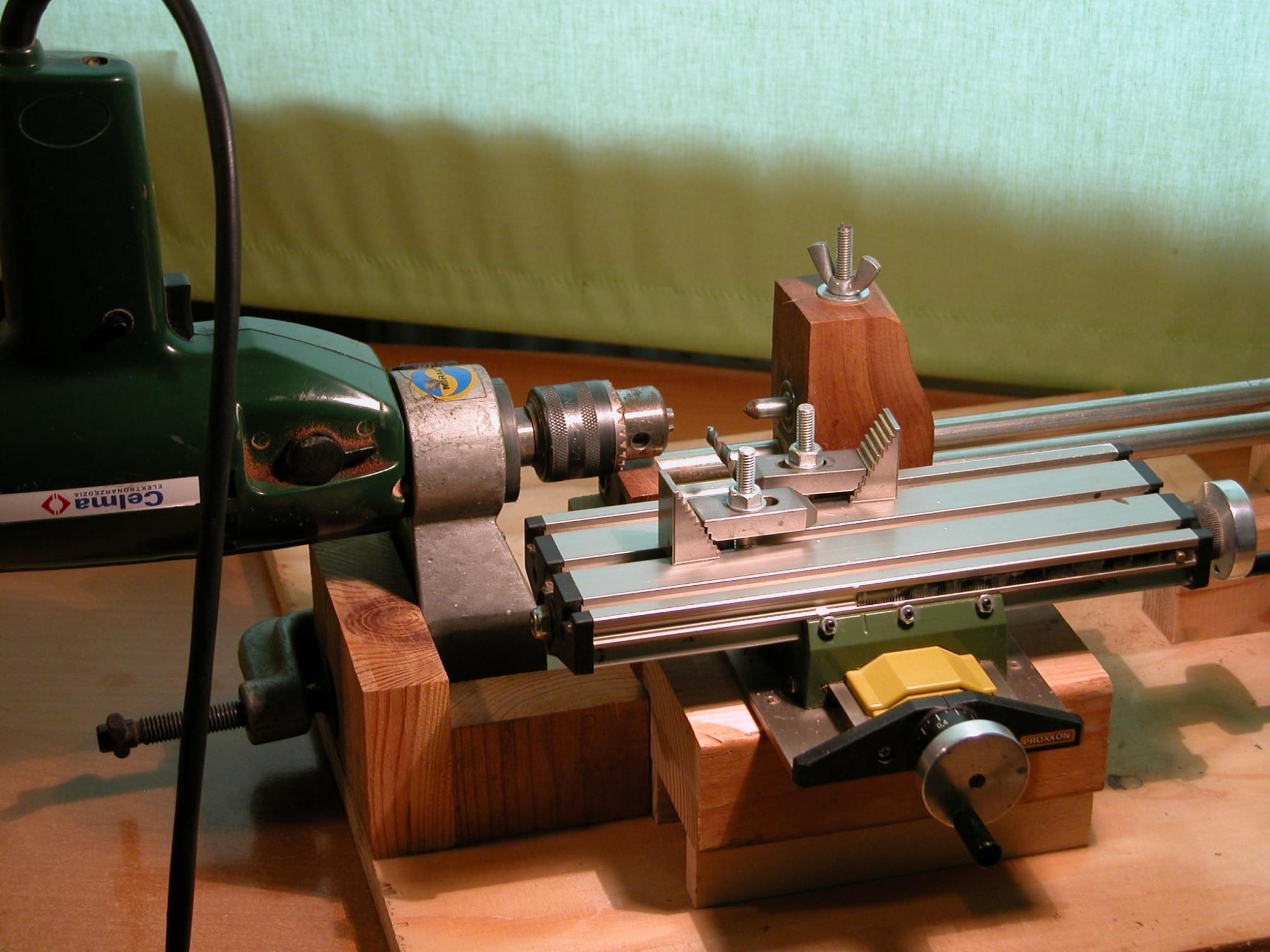 Noże mocuję do stolika koordynacyjnego. Ustawienie stolika równolegle do osi "tokarki" pozwala na w miarę przyzwoite toczenie.