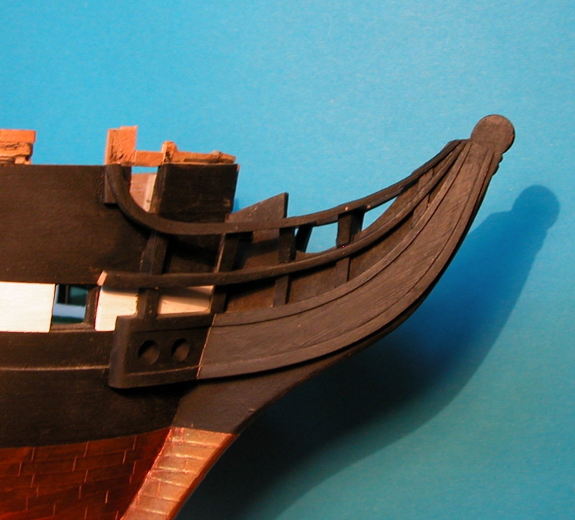 Te naciecia wcale nie byly obowiazkowo stosowana regula, owszem, uzywano ich dosc czesto aby nie zakonczac planek w ostry dziob (gdzie gnicie od wilgoci postepowalo szybciej), ale, jak wspomnialem, nie wszyscy stosowali to konkretnie rozwiazanie. Ewidentnie, na Conny tego nie bylo.