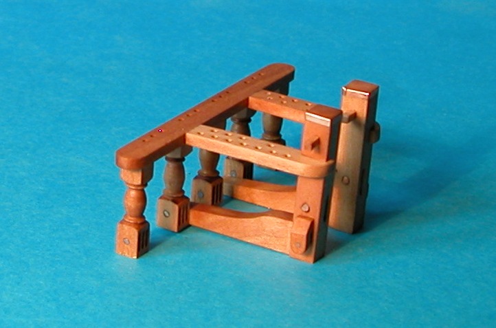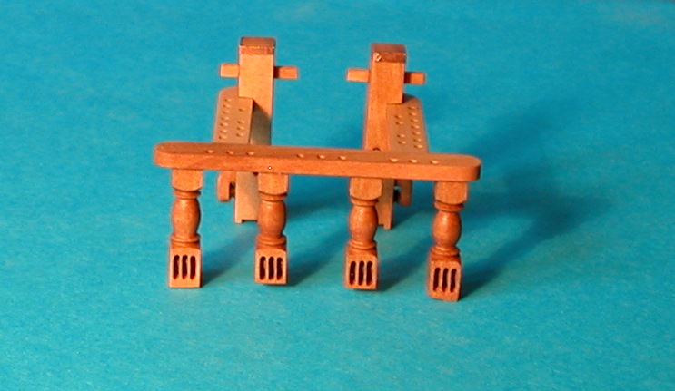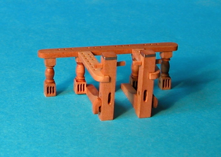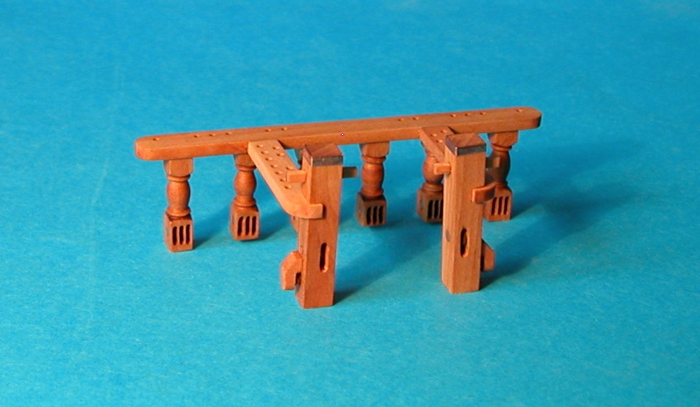 Jeszcze za dużo, ale mniej już nie dałem rady. Żeby zachować proporcje zwiększyłem tylko nieco pozostałe wymiary (wysokość tralek, grubość ławy itd.). Ortodoksyjni szczegółowcy pewnie się oburzą, ale trudno.