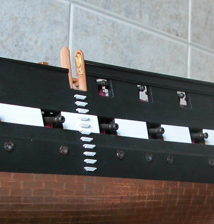 Wracając do nagelbanków; w mojej skali ograniczę się jedynie do wykonania profilowanych otworów w słupkach i spróbuję toczenia nożem kształtowym (słupki 3x3 mm); może się uda w drewnie gruszkowym... Przy mojej skali muszę zrezygnować z wykonywania dość karkołomnych (dla mnie) detali na korzyć zachowania skali dla możliwie dużej ilości elementów. Jest to dla mnie b. ważne. Często widzi się modele (ta uwaga nie dot. Twojego), których twórcy „na silę” robią wszystko, co ma okręt; a później bloki i kołki w kołkownicach są wielkości marynarza.