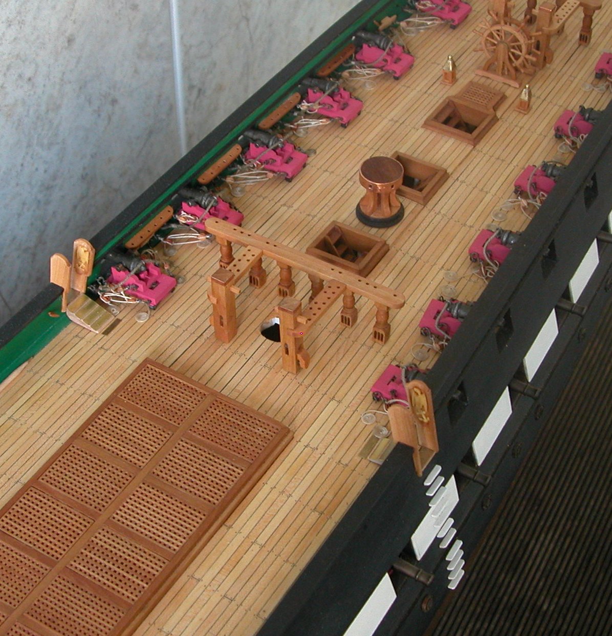 Niestety nie zdążyłem zrobić foto po przymocowaniu tego do pokładu. Jutro c.d, czyli harmaty.