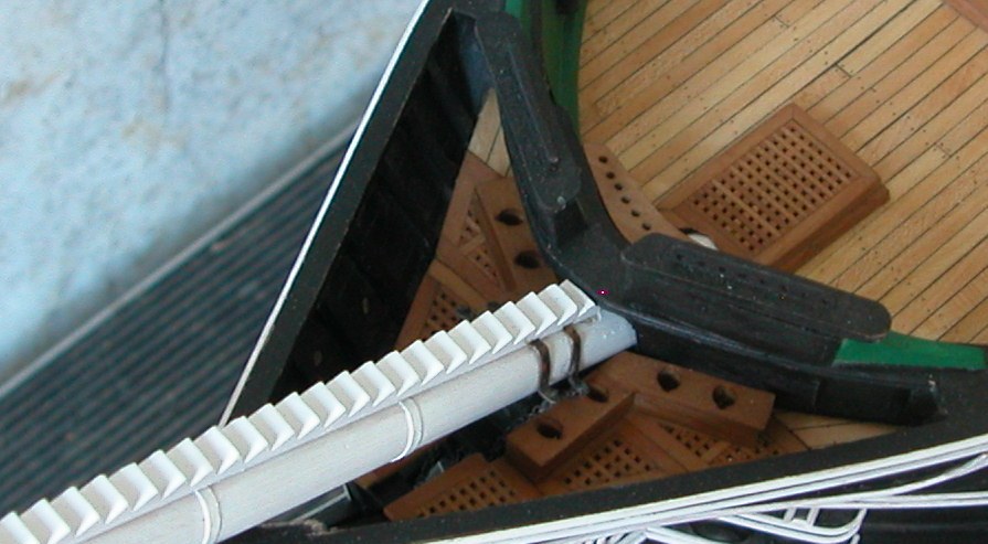 Mnie nie starczy cierpliwości ani samozaparcia na takie dopieszczanie drobiazgów. Jestem na początku budowy; mam prawie skończony szkielet kadłuba z wycinanki laserowej. Obecnie próbuję wykonywać elementy omasztowania; wg planów, bo te wycinankowe nie odpowiadają mi (np. maszt w postaci rurki zwiniętej z papieru, a marsy jako prostokątne płyty). Dlatego zdecydowałem się na dalszą budowę, w dużej części opartą o amerykańskie plany. Myślę, że one mi wystarczą.