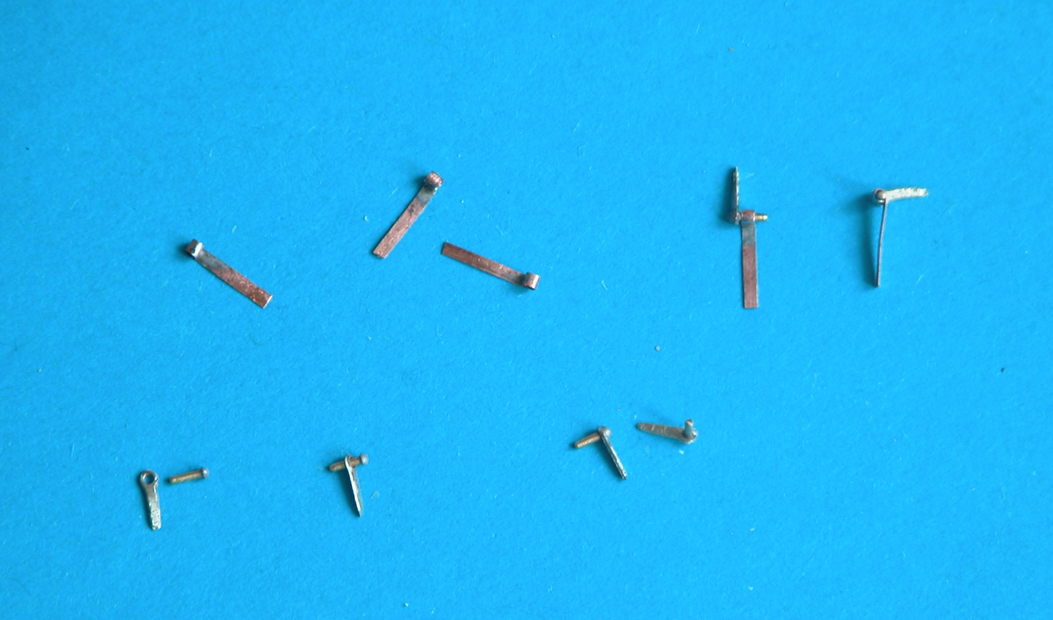 Zawiasy wykonałem z użyczonych mi przez Kargę płaskowników (1,0x0,1 mm) – jeszcze raz dzięki!!, oraz nabytych, fototrawionych oczek i nitów 0,5 mm.