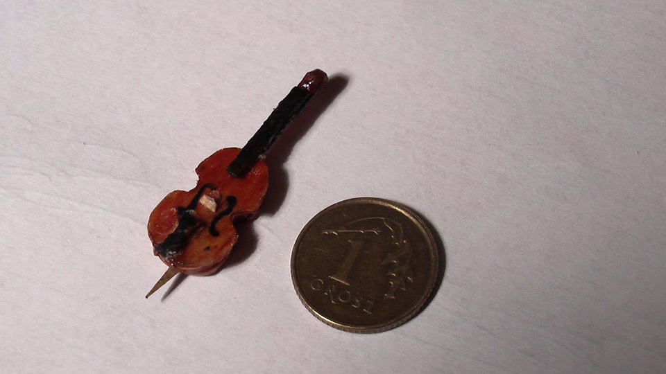 Dzisiaj zbudowaem 3 pokłady ale sprzęty jakie zamieszczę w kajucie będą widoczne tylko na środkowym poziomie. Dolny i górny będą rozświetlone ale zasłonięte. W końcu oficer też ma prawo do prywatności i nie należy podglądać co tam robi:). Także dzisiaj w starciu ja kontra mikroskop wygrałem pojedynek i powstał pierwszy z przedmiotów jakie będą znajdowały sięw kajucie oficerskiej. Poniżej zostawiam zdjęcia gdyby ktoś chciał spróbować zrobić instrument. Niestety nie mogłem go nastroić więc zdjąłem struny:)