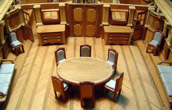 Bardzo ciekawe stwierdzenie z tym brytyjskim okrętem:) u mnie wygląda to tak jakby wszyscy oficerowie zostali wybici więc na cóż komu puste kabiny. Pierwotnie miałem pomysł aby zrobić dół wyższy a góry nie dizelić już na pół tylko zasłonić wszystkie okna ale pozostawić poświatę od diod. Teraz Karolu podkusiłeś mnie aby jednak zrobić 3 pokłady. Nie wiem czy dobrze to przeliczyłem w tej skali ale w takim razie powinny mieć one wysokość 1.84cm każdy. No i jak ja zrobię centymetrową wiolonczelę, która jest inspiracją po pewnym filmie:) Kto oglądał to wie:) a przy okazji jako muzyk muszę coś zostawić. Dobrze, że nie wpadłem na pomysł budowania skrzypiec bo na filmie też były:) Pewnie miałyby one jakieś 3mm:)
