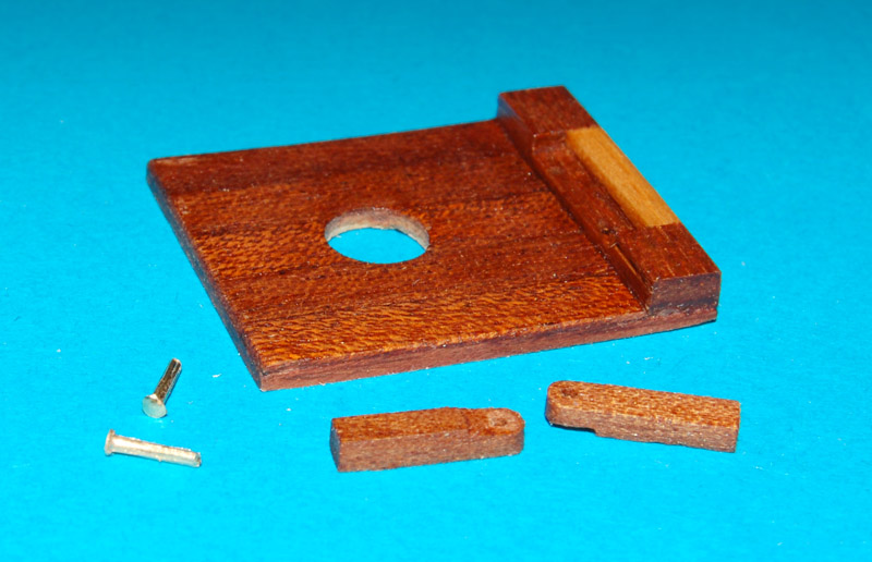 Na podstawę nakleiłem listwy desek, z listewki 2 x 2 mm zrobiłem zapadki, z mosiężnego drutu ø= 0,7 mm zrobiłem gwoździe rozklepując łepek.