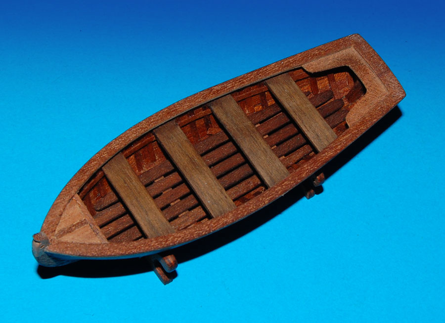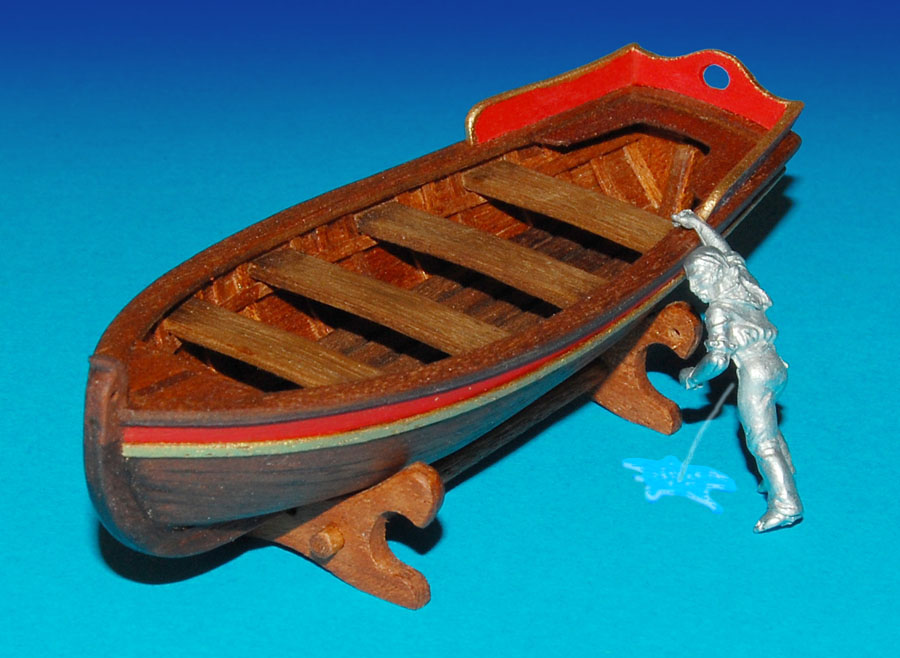Mając obecnie lepsze wzorce (i o wiele większe doświadczenie w budowie szalup ;-) ) mógłbym pokusić się o wykonanie nowej (może kiedyś, w dalszej przyszłości ;-) ), ale mimo, że ta jest krzywa, niezbyt poprawna co do epoki, więc tylko poprawię to, co mi się w niej nie podoba.