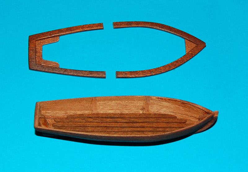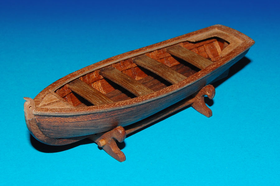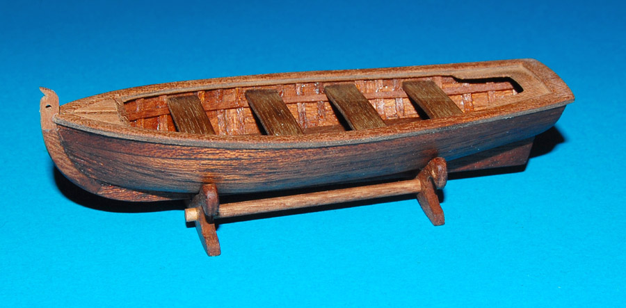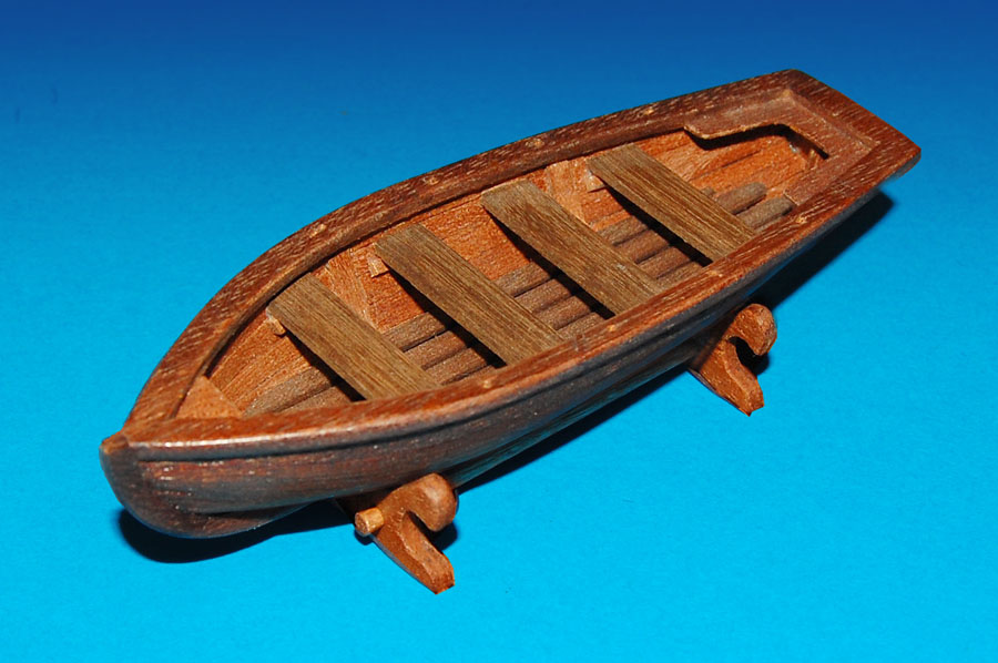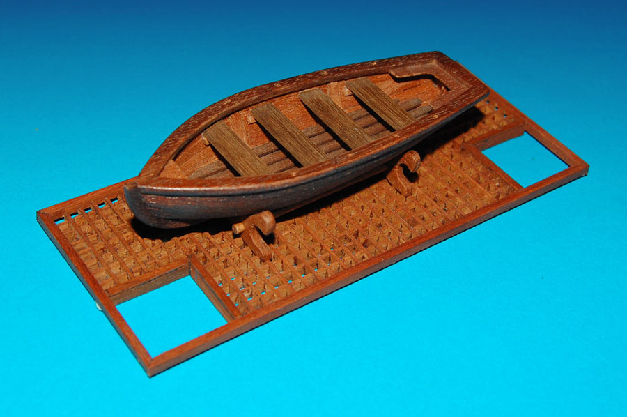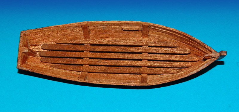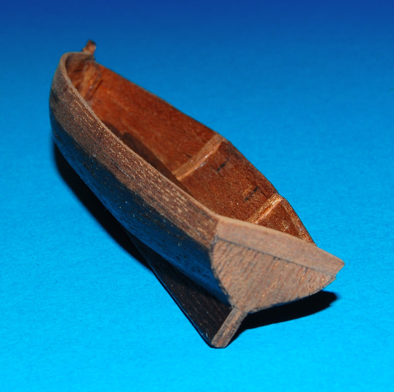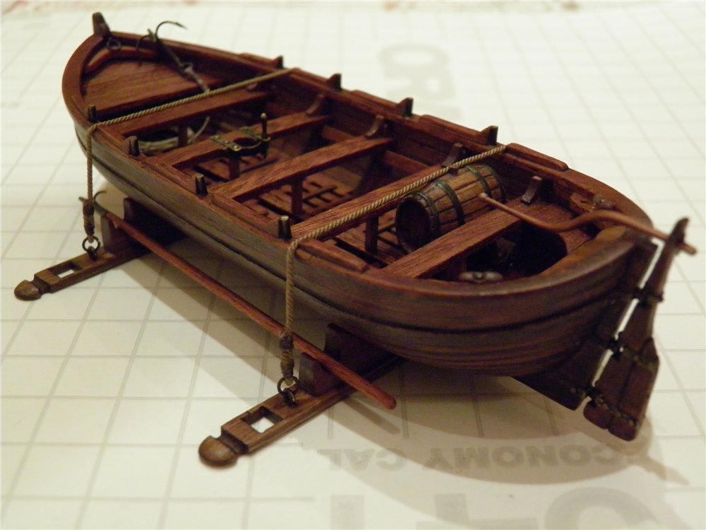 Mając obecnie lepsze wzorce (i o wiele większe doświadczenie w budowie szalup ;-) ) mógłbym pokusić się o wykonanie nowej (może kiedyś, w dalszej przyszłości ;-) ), ale mimo, że ta jest krzywa, niezbyt poprawna co do epoki, więc tylko poprawię to, co mi się w niej nie podoba.