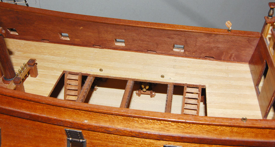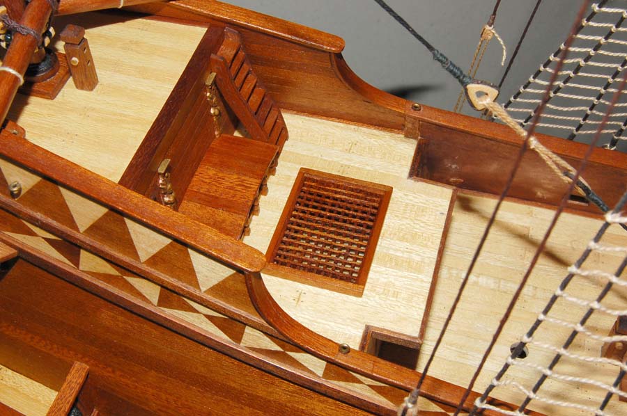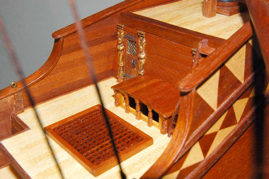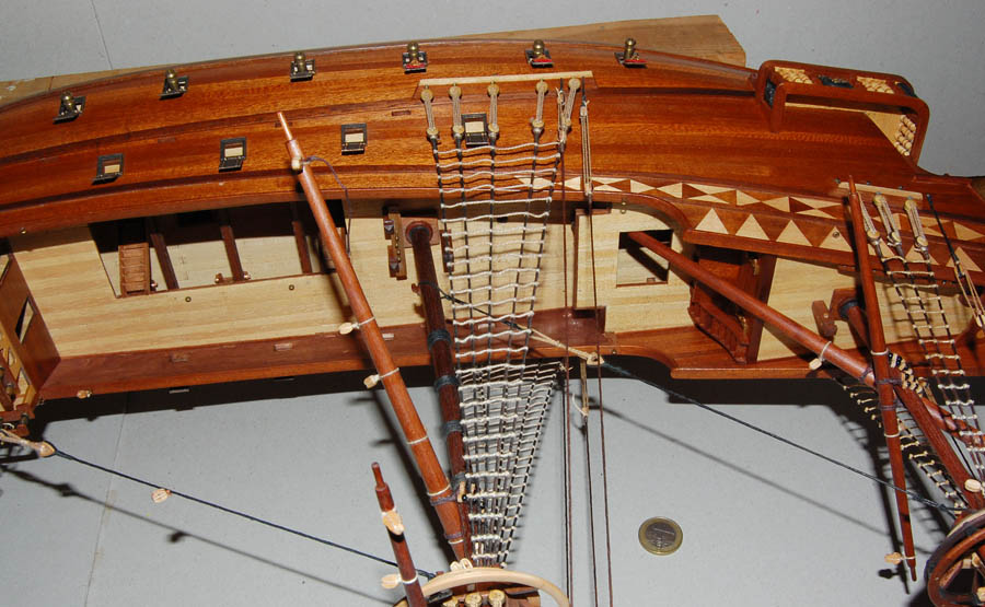 Czy jestes pewien, ze szalupa spoczywala na takich wspornikach, jak pokazales na dwoch ostatnich zdjeciach? Boje sie, ze pod wplywem ciezaru tej szalupy, lekka i delikatna konstrukcja gretingu moglaby nie wytrzymac i po prostu zarwac sie (nie mowie o Twym modelu, ale o pelnowymiarowym zaglowcu).