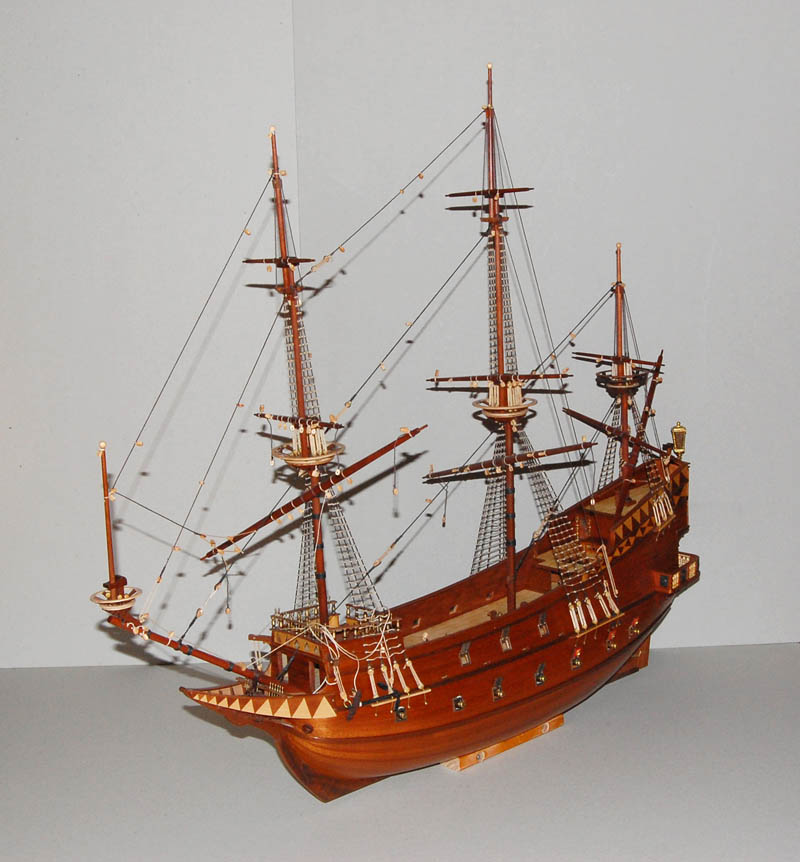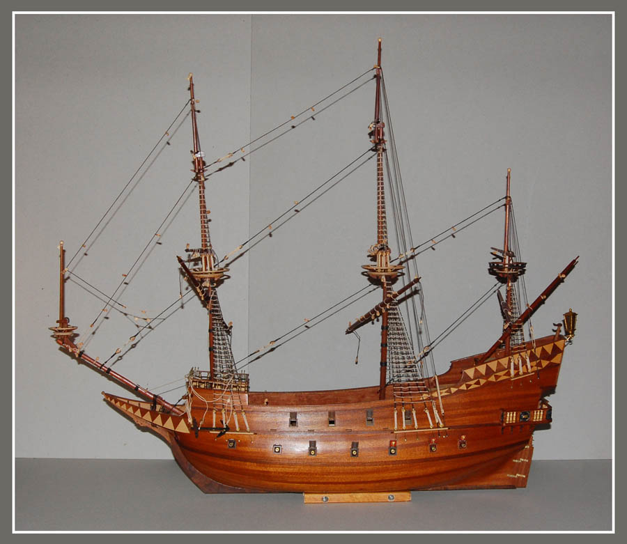 Od początku budowy zdecydowałem, że model ma mieć cechy ozdoby, a nie dokładnej kopi jakiejś konkretnej jednostki (z braku niestety wzorca). Model budowałem w większości z własnych materiałów opierając się jednak na instrukcji kolekcji "Galeon" (wiadomego wydawnictwa), gdyż taka stylistyka przypadła mi do gustu (wtedy).
