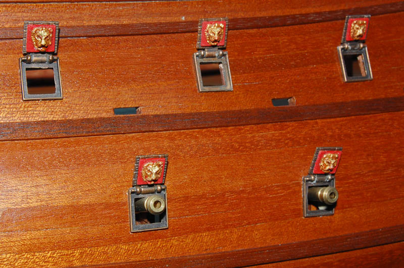Na górnym pokładzie, wewnątrz ambrazur będę wklejał czerwone ramki, na dolnym ze względu na armaty jest to niemożliwe, więc na próbę pomalowałem ramkę: