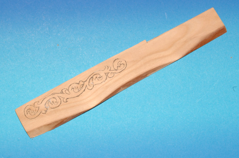 Najpierw za pomocą kalki maszynowej "Kores" (type carbon paper) i igły przeniosłem projekt ornamentu na deszczułkę.