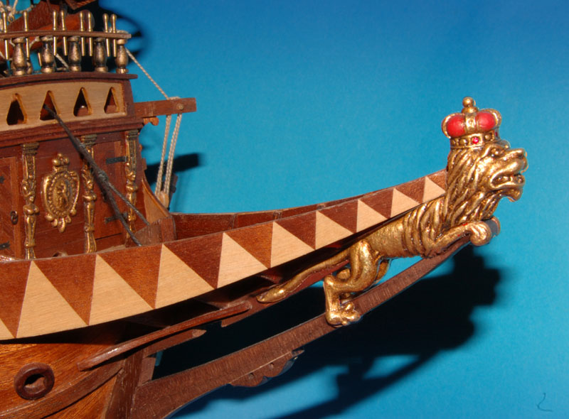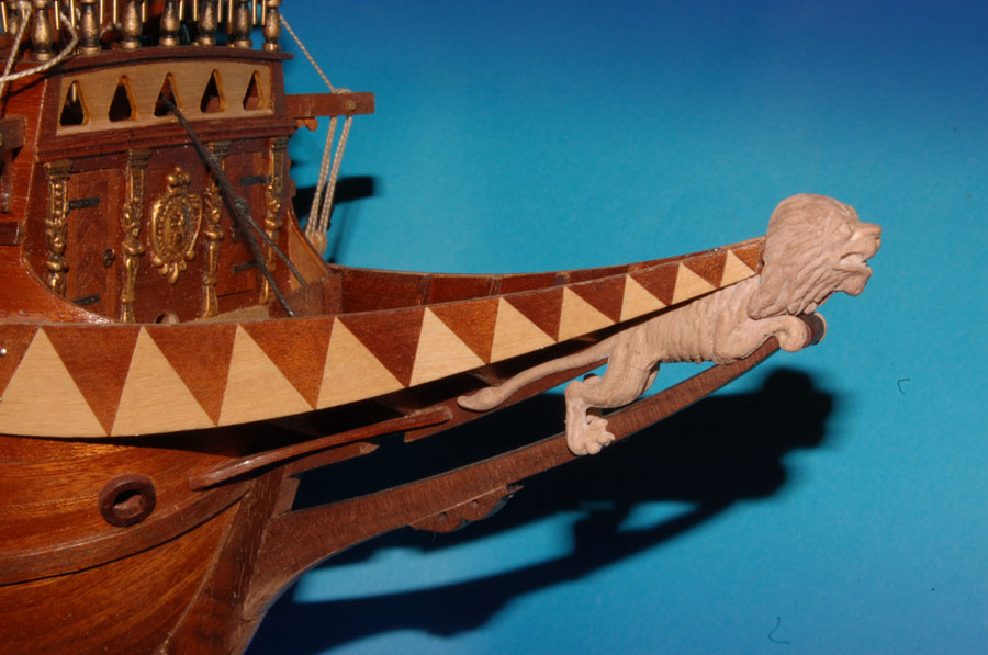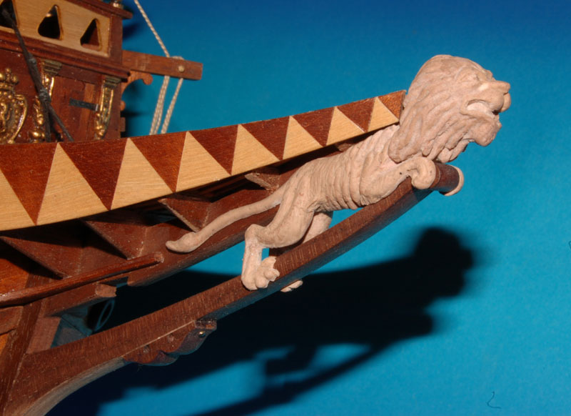 Model lwa mam, teraz trzeba podjąć decyzję jaką ma mieć kolorystykę, bo możliwości jest kilka: od drewnianych, poprzez malowane do całkowicie lub częściowo złoconych. Gwoli ścisłości złoto (lub imitacje) było stosowane w modelach, w rzeczywistości stosowano farbę, że zacytuję z artykułu p. Krzysztofa Gerlacha - "...Miejsca rzekomo złocone (rzeźby) z reguły pokrywano naprawdę tylko żółcią neapolitańską. ..."