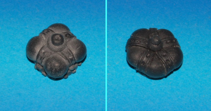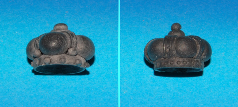 Koronę ulepiłem z modeliny - bardzo prosty sposób. Podstawa 1 mm placuszek, fi 13 mm, na to 4 kulki i krzyż jako 4 kabłąki i dwie mniejsze kulki na zwieńczenie (ta z lewej, szer. 15 - 17 mm).