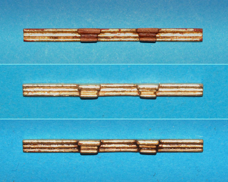 Jak już pisałem, do wersji z hermami zrobiłem kilka prototypów i zdecydowałem, że wykorzystam je do wykończenia balustrady kasztelu, a po wewnętrznej stronie dam tralki (nawiązanie do balkonu i balustrady ćwierćpokładu).