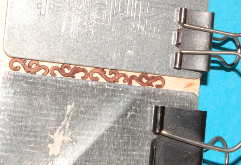 Jak widać w poprzednich postach do wykonania zdobień potrzebowałem ornamentów różnej szerokości od 5 do 9 mm. Teraz potrzebuje 2 mm na czoła podpór balkonu i nawisu,