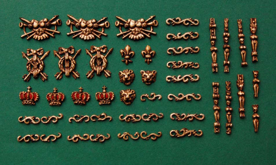 Ozdoby są rewelacyjne .Jak udało Ci się wykonać tak małe i precyzyjne postaci lwa czy panoplia z bronią .Głowię się nad tym bo burtę mam pokrytą tego typu ozdobami .Pozdrawiam .R