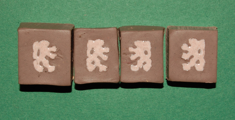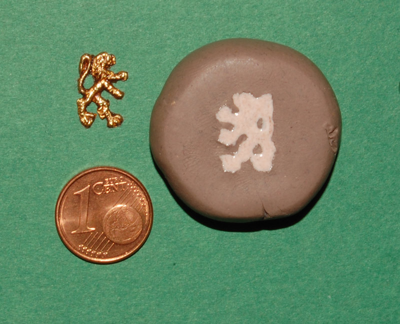 czyli jak nie chce mi się rzeźbić, wykorzystuję "gotowce" - w tym wypadku są to odciski w plastelinie odznak herbów polskich miast (za szczeniaka obowiązkowe kolonie letnie w różne rejony naszej kochanej Ojczyzny i obowiązkowo kupowałem odznaki herbów w kioskach Ruchu